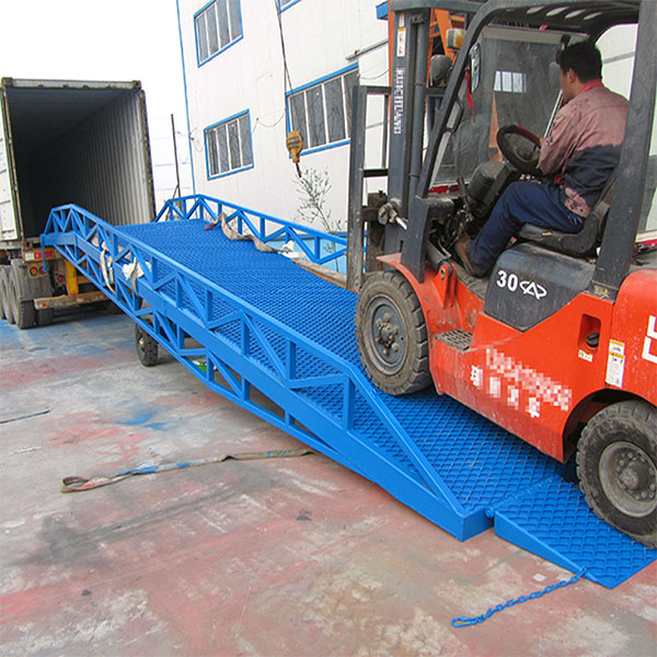 移動登車橋是實現(xiàn)貨物快速裝卸的專用輔助設備,它的高度調節(jié)功能使貨車與庫房的貨臺之間架起一座橋梁,叉車等搬運車輛通過它能直接駛入貨車內部進行貨物的批量裝卸,僅需單人作業(yè),即可實現(xiàn)貨物的快速裝卸。移動液壓登車橋使企業(yè)減少大量勞力,提高工作效率,獲取更大經濟效益。臺面均設計為網格狀鋼板,這種結構能保證具有很好的強度,又具有防滑功能,還能方便地清掃工作臺面,使它能經常地保持清潔、美觀。移動液壓登車橋無須外接電源,通過手搖泵做動力能輕松地在其整個調整范圍內按50mm的倍數(shù)進行高度的調整。可以充分適應各種不同高度的貨車.